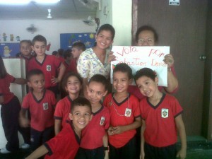 Celebrando con el candidato de los juguetes