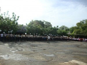 Promoción Quinto año con los globos de los deseos a la Virgen